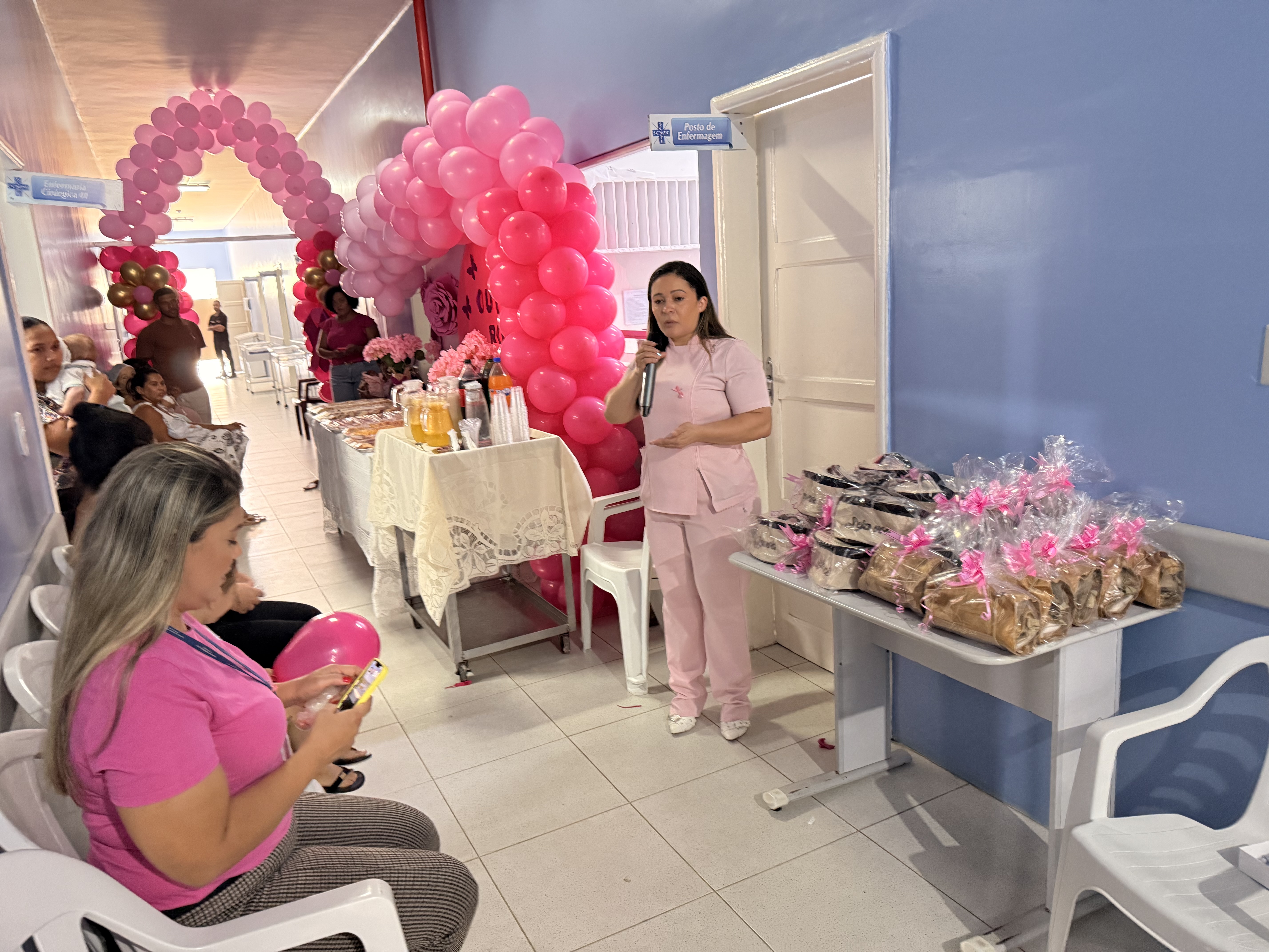 A programação contou com palestra da enfermeira especialista em Saúde da Mulher, Josevania Carvalho, que abordou a importância da prevenção e do cuidado contínuo com a saúde feminina.
