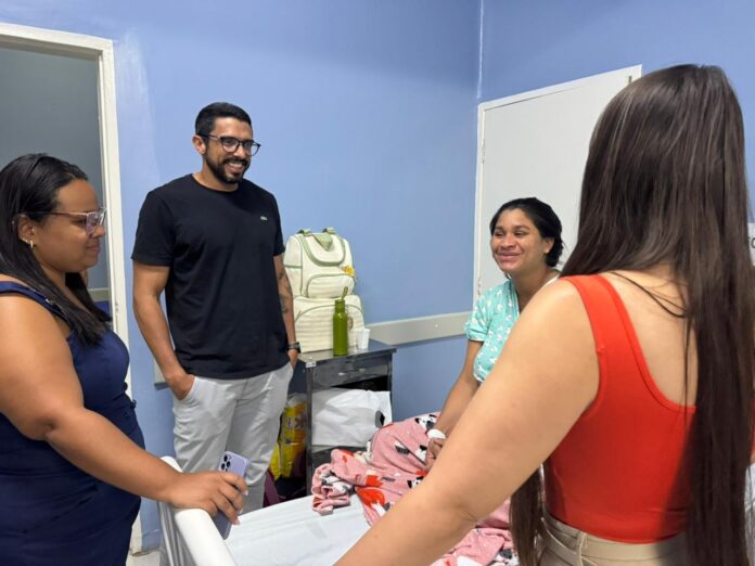 A emoção tomou conta da maternidade da Santa Casa de Misericórdia de Penedo nesta quarta-feira, 12 de novembro. A jovem mãe Aline Mendes, que teve um parto natural e seguro após uma gestação de risco, recebeu a visita do diretor administrativo da instituição, Sami Ferrari, e da secretária municipal de Saúde, Wannina Mendonça. O encontro foi marcado por carinho, reconhecimento e pela reafirmação do compromisso conjunto entre a Santa Casa e a Secretaria de Saúde com a humanização no atendimento.