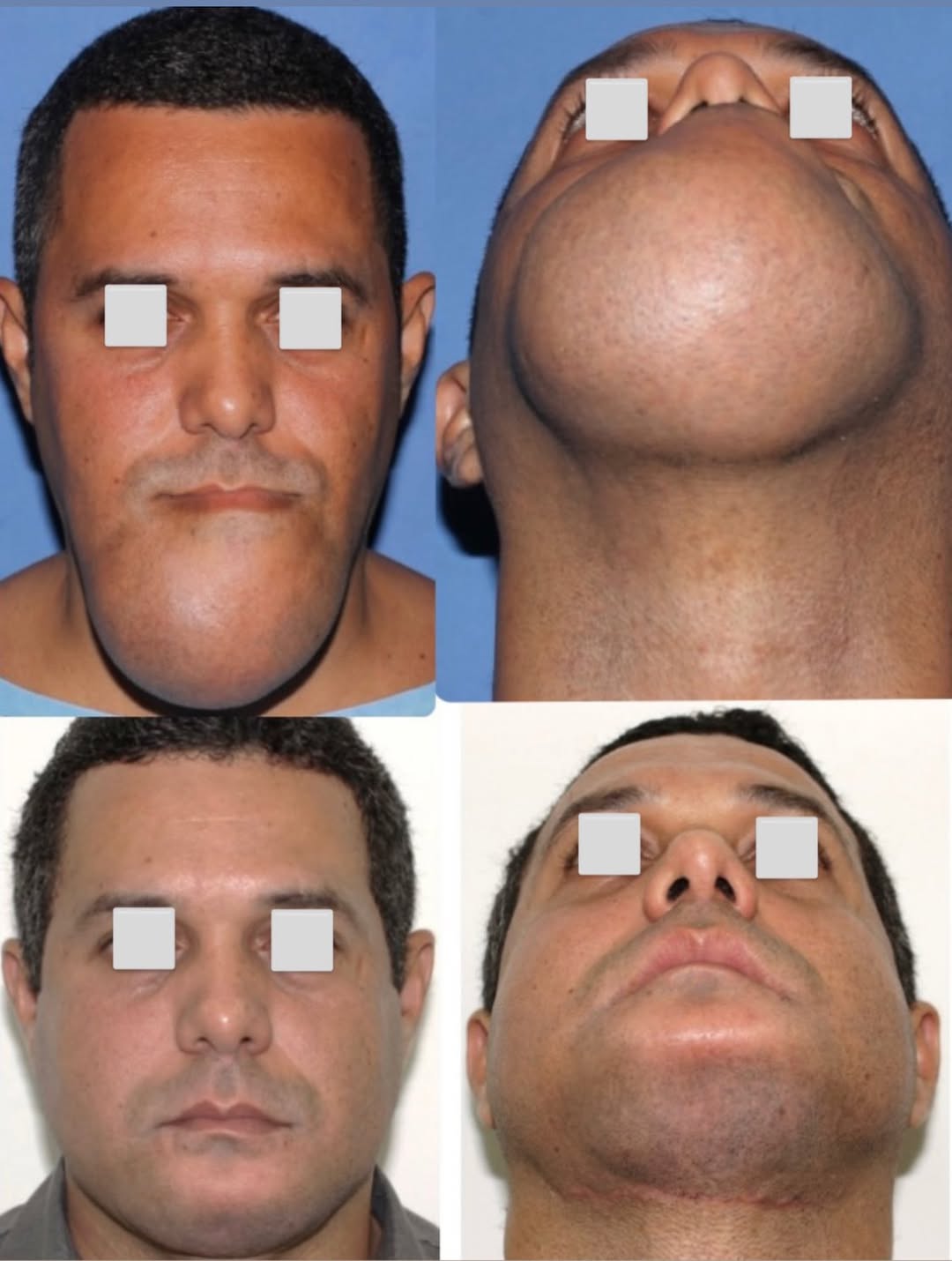 O caso teve início há nove anos, quando o paciente foi submetido a uma mandibulectomia para remoção de um tumor no maxilar inferior, do tipo Ameloblastoma, patologia rara que exige intervenção especializada. Na ocasião, houve a fixação imediata dos cotos ósseos por meio de uma placa de reconstrução temporária, medida essencial para a manutenção das funções estomatognáticas transitoriamente, responsáveis por processos como mastigação, deglutição e fala.