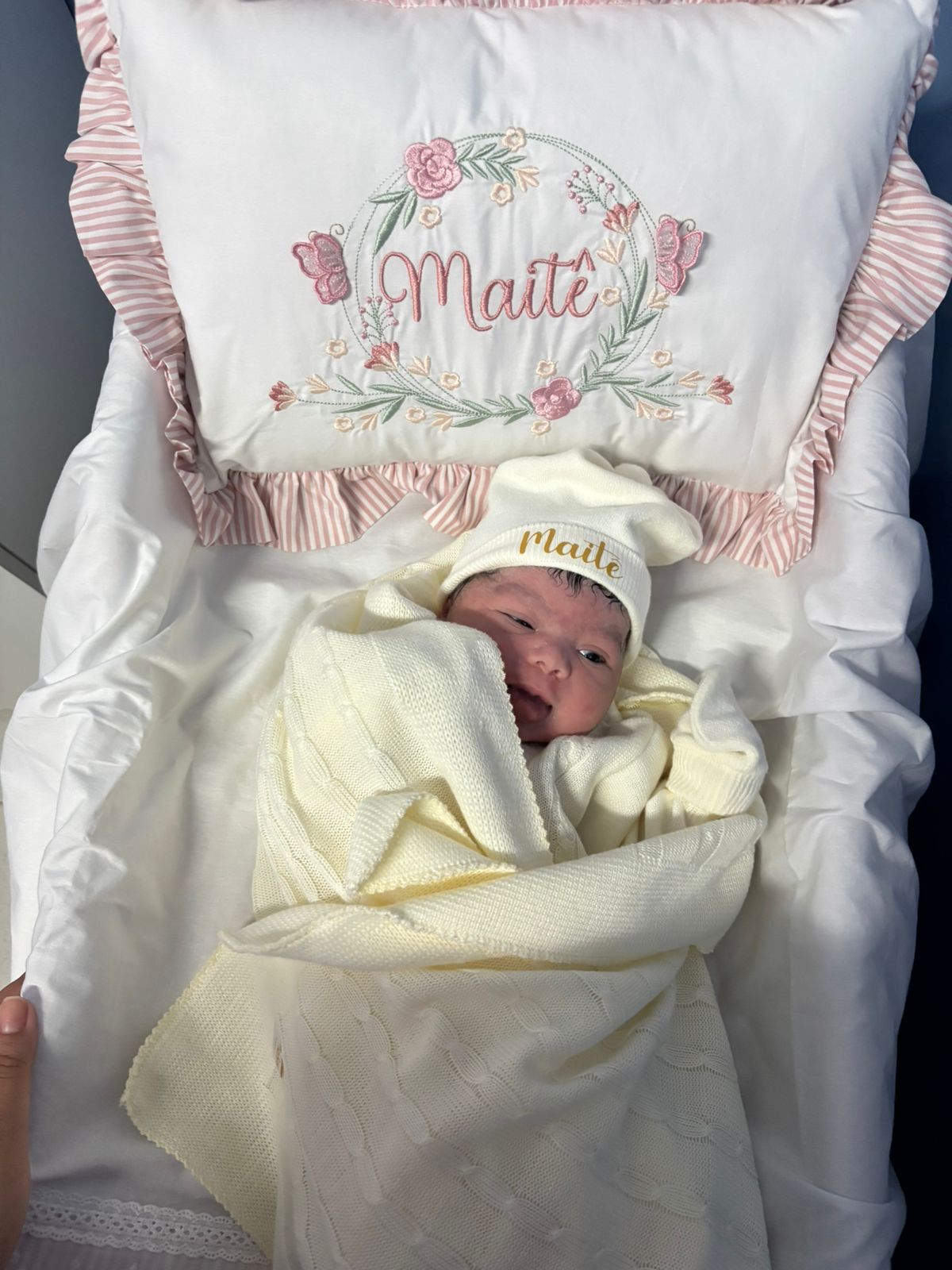Maitê veio ao mundo por meio de parto cesariano, procedimento necessário devido à condição de circular de cordão (laçada), pesando 3,840 kg e medindo 49 centímetros. O nascimento transcorreu com segurança graças à atuação da equipe multiprofissional da maternidade.
