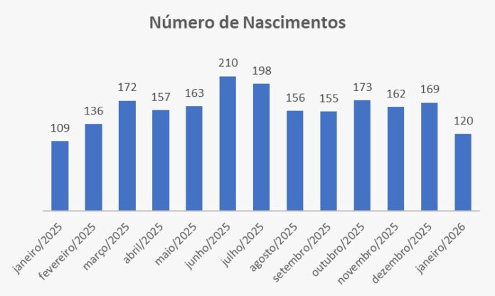 De acordo com os dados da maternidade, em janeiro de 2025 foram contabilizados 109 nascimentos. Já em janeiro de 2026, esse número subiu para 120 crianças nascidas, representando um crescimento no volume de partos realizados na unidade.