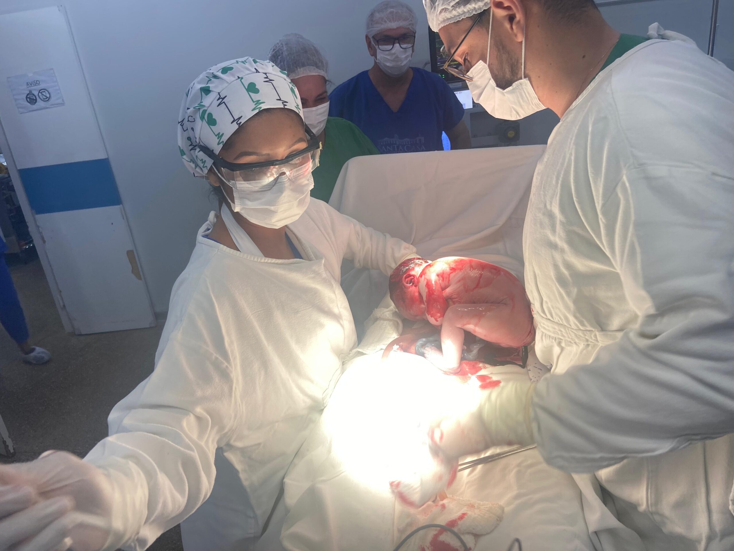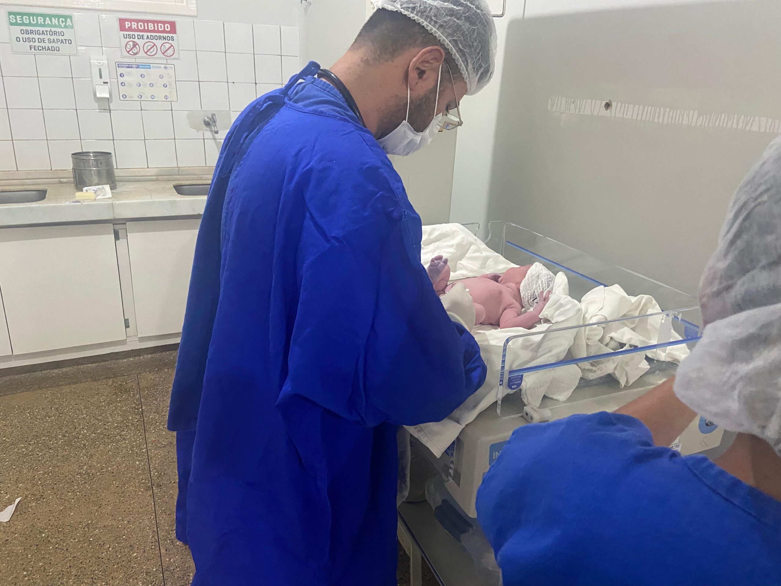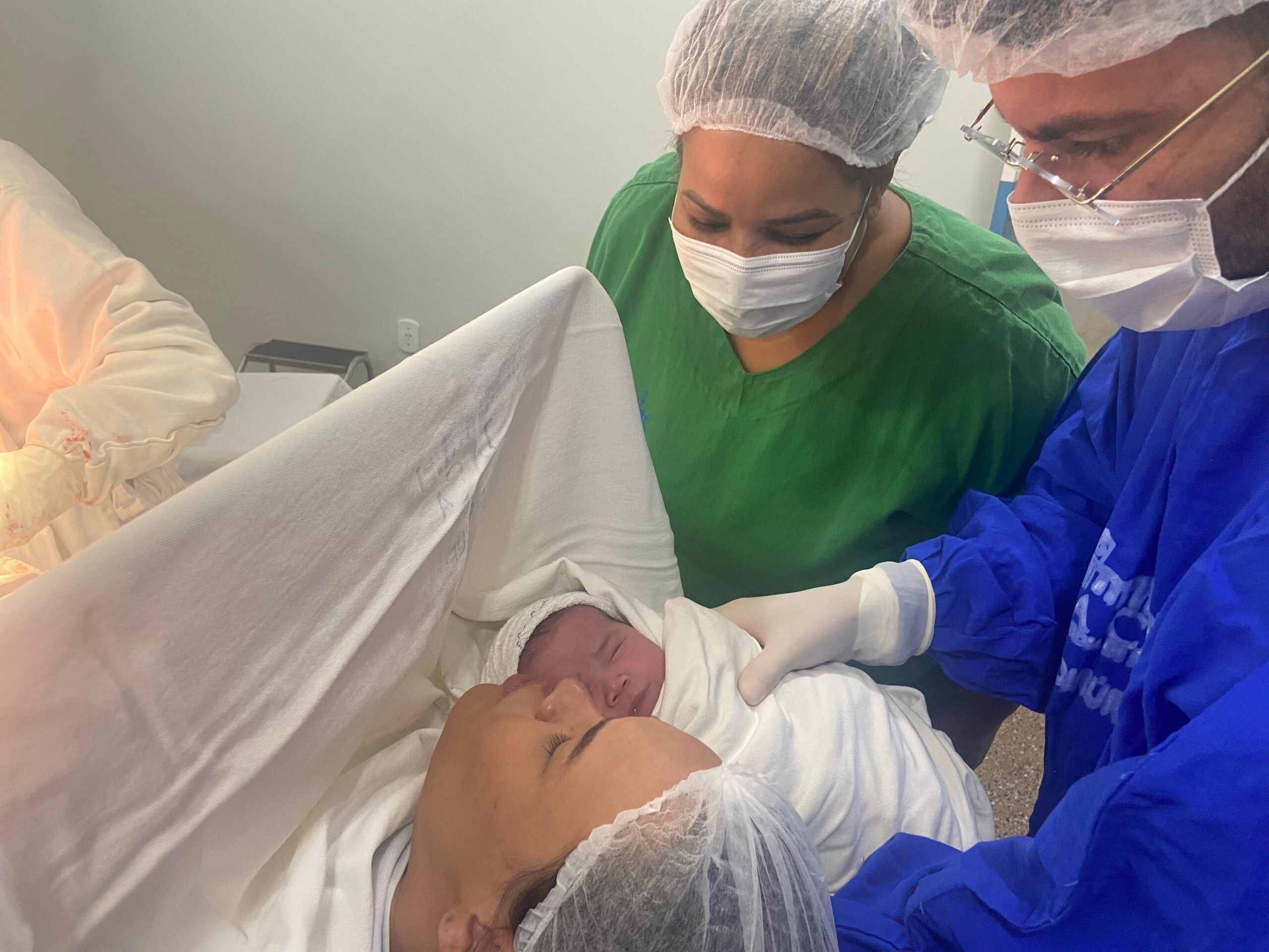 Como não houve evolução satisfatória das contrações e a criança apresentava peso aproximado de 4,176 kg, conforme a última ultrassonografia realizada no dia 02/02, a mãe optou pela cesariana, procedimento que transcorreu com total segurança, conduzido pela equipe médica.