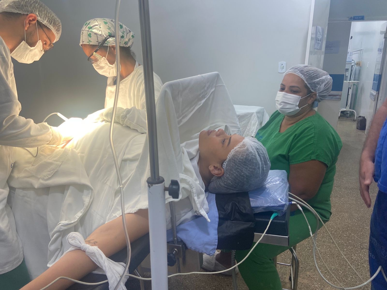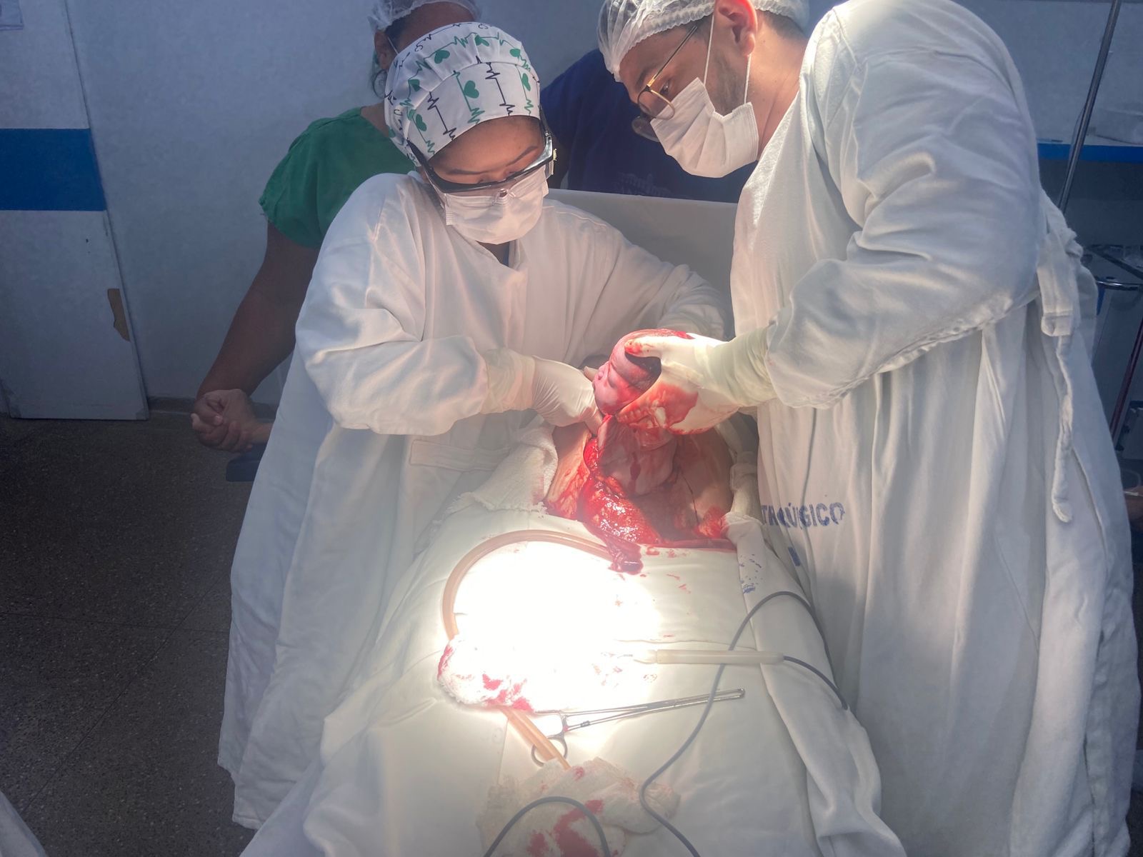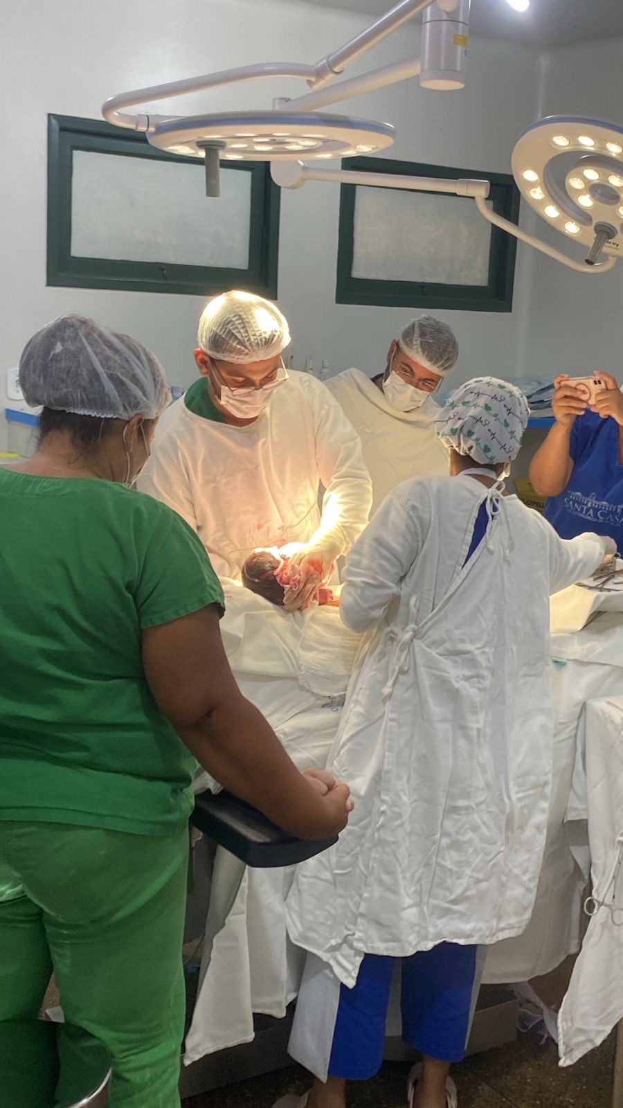 Como não houve evolução satisfatória das contrações e a criança apresentava peso aproximado de 4,176 kg, conforme a última ultrassonografia realizada no dia 02/02, a mãe optou pela cesariana, procedimento que transcorreu com total segurança, conduzido pela equipe médica.