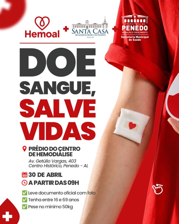 A Santa Casa de Misericórdia de Penedo realizará no próximo dia 30 de abril uma importante campanha de doação de sangue, reforçando o compromisso da instituição com a vida e o cuidado aos pacientes da região.